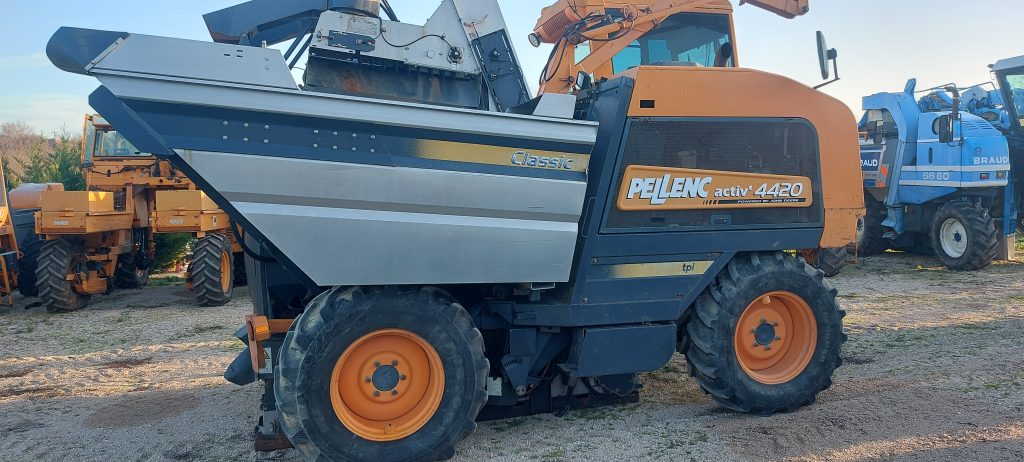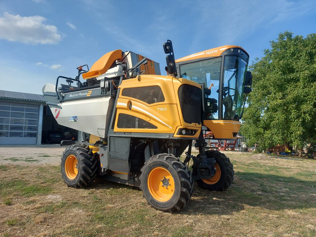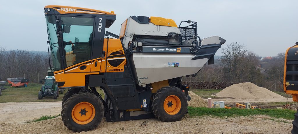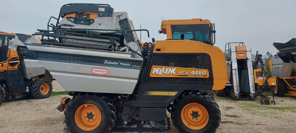 Pellenc 8050 vontatott szüretelőgép, 2014-es, 414 üzemórát dolgozott, nagy tartályos, teljes gardán hajtás, hajtott kerekek, Joystick vezérlő, LCD kijelző, autómatikus sorontartás, szalagfigyelő, 2 ventillátor.