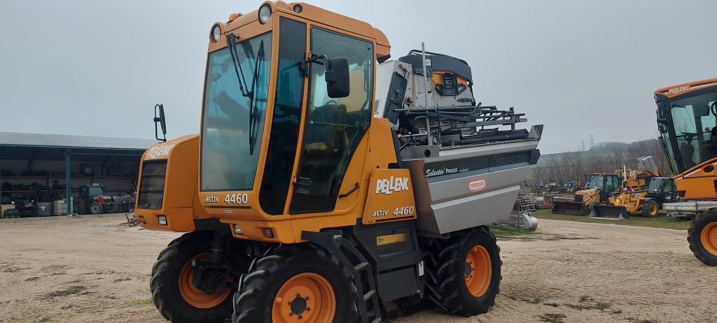 Pellenc 3070 2002-es szüretelőkombájn, Perkins 4 hengeres motor 2864 üzemórával, nagy 1500l/db tartály, sorfigyelő, szalagfigyelő, classic szedőegység, felújítva eladó.